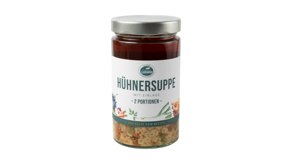 Unsere Hühnersuppe wird mit besten Zutaten schonend hergestellt. Sie besteht aus Geflügelbrühe aus eigener Herstellung gepaart mit einer Einlage von Würfeln aus Putenbrust, Gemüse, Eierstich und Reis. Kurz erhitzt eignet sich dieses Produkt hervorragend als Vorsuppe bei einem Essen mit Freunden oder als leichtes Mittagsgericht.